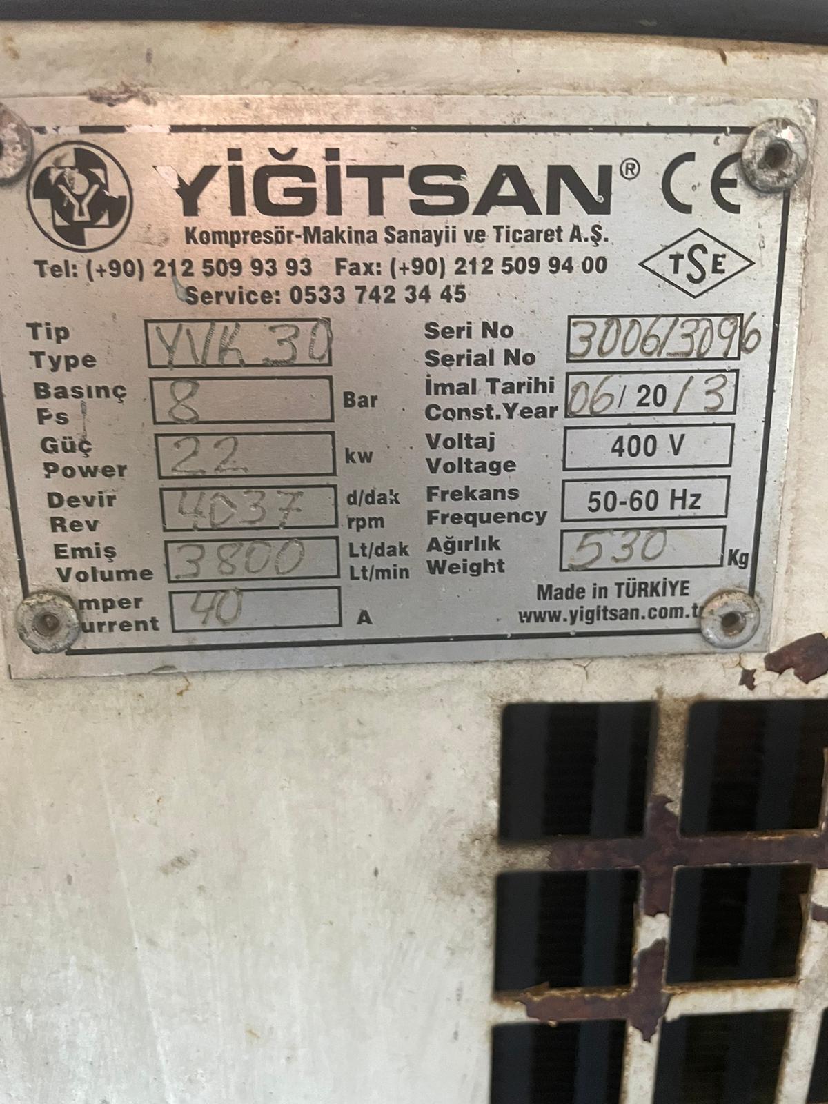 YİĞİTSAN 22 KW -30 HP VİDALI KOMPRESÖR